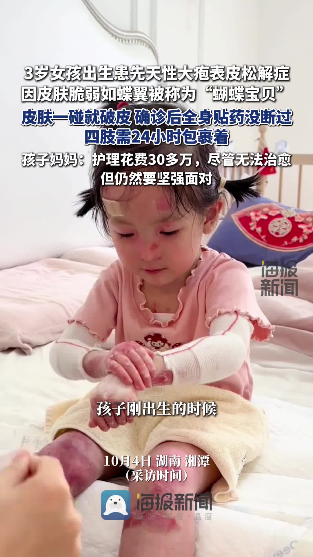• 3歲女孩出生時確診“蝴蝶寶貝”皮膚一碰就破 孩子媽媽:盡管無法治愈,但仍然要堅強面對
